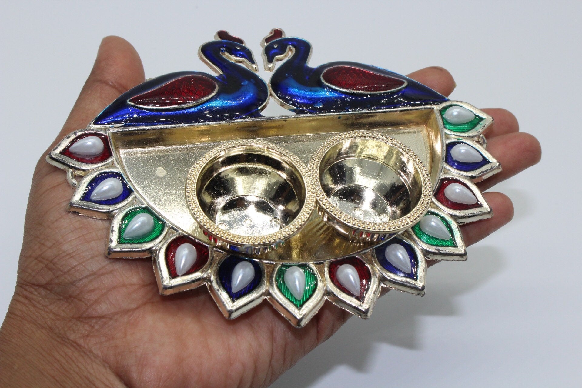 Arihant Creations - Peacock style Haldi Kumkum Holder diwali gift/ festive gift/ haldi kumkum return gift/wedding/ rakhi platter