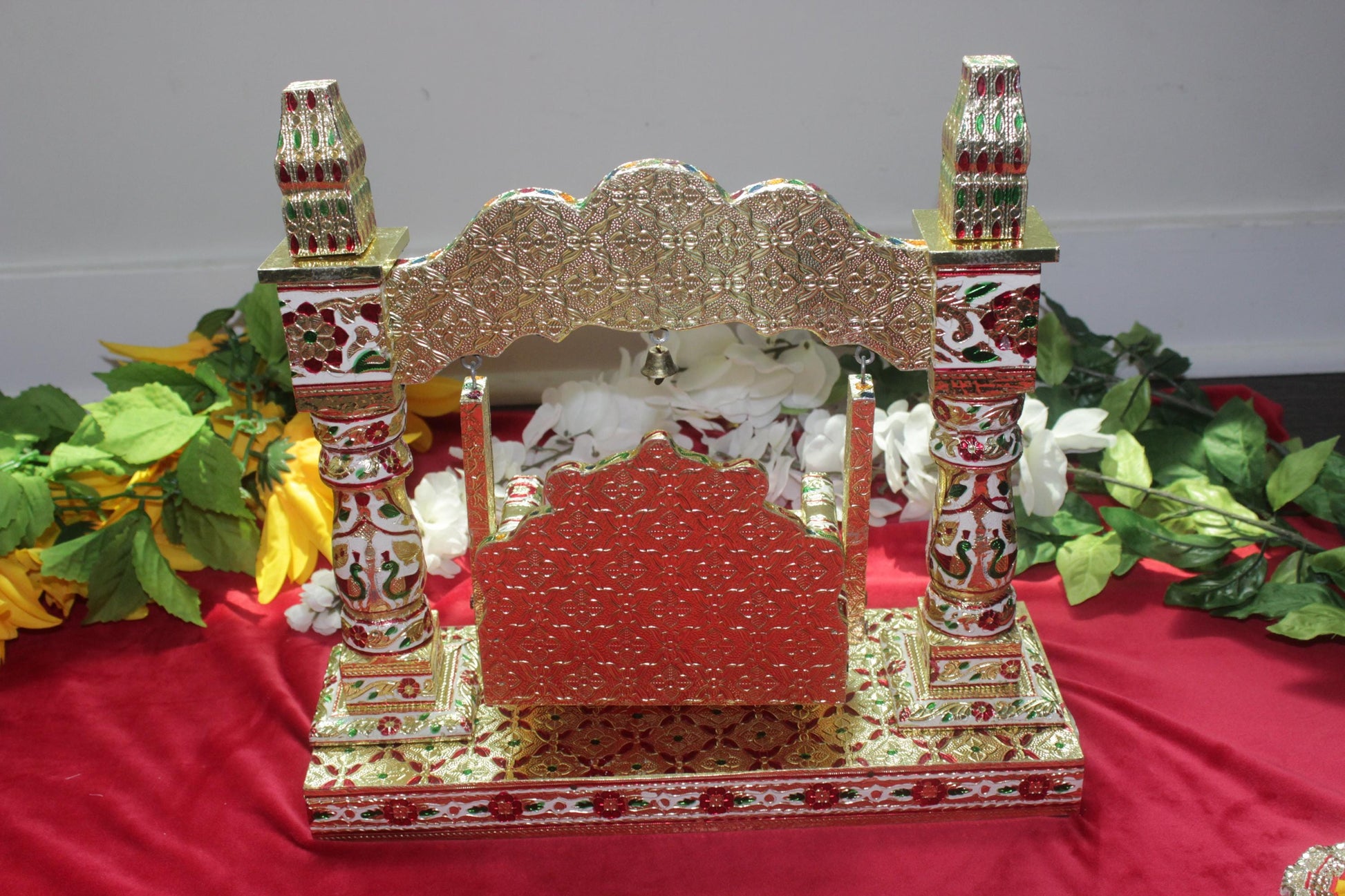 Big wooden Krishna Jhula, swing for lord Kanhaiya, Jhula for laddoo gopal, swing for baby Krishna, Janmashtami decoration, Thakor ji Parana