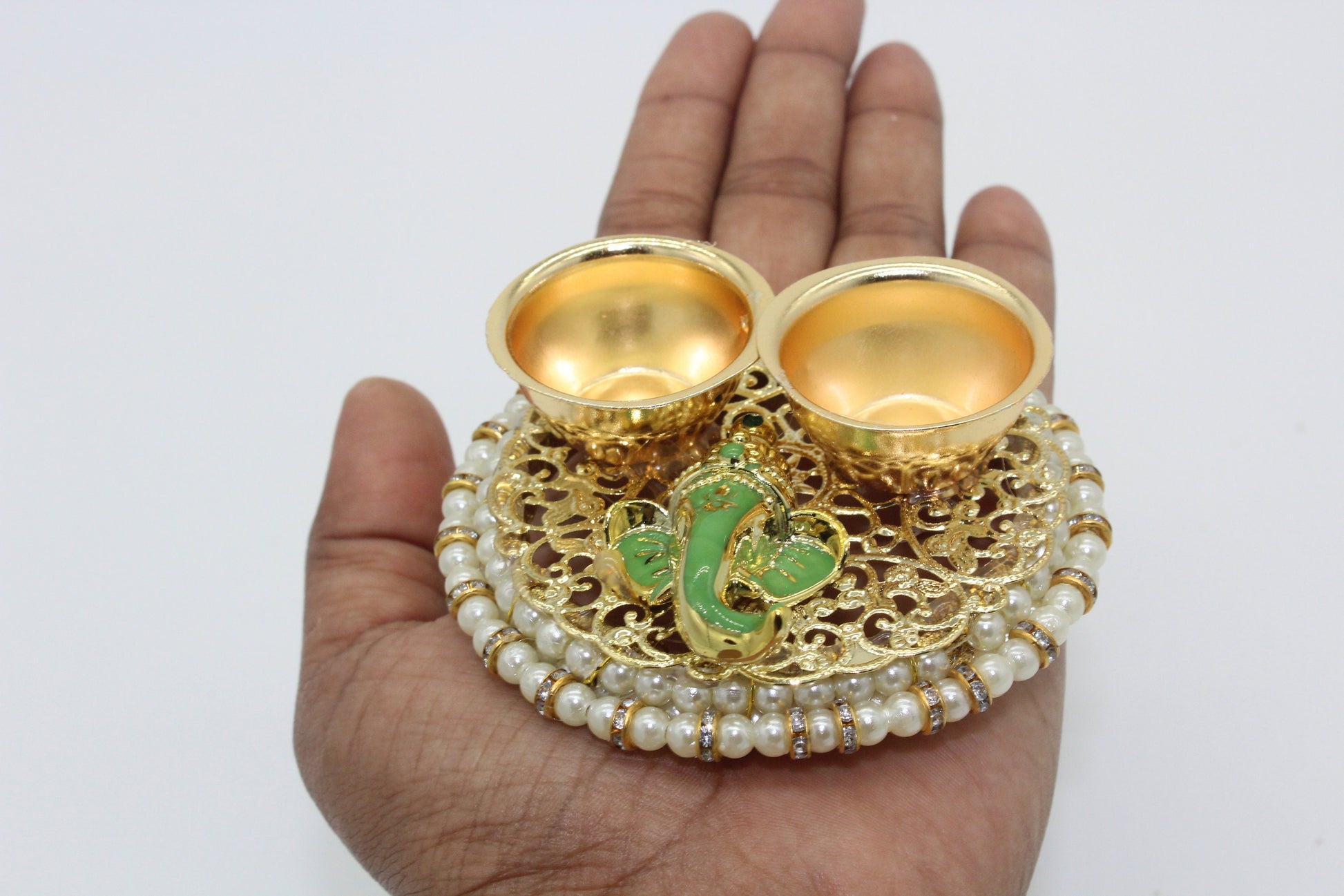- On every Indian festival occasion haldi kumkum platter is needed to perform the pooja ritual and this unique platter is combined with the graceful lord Ganesha idol